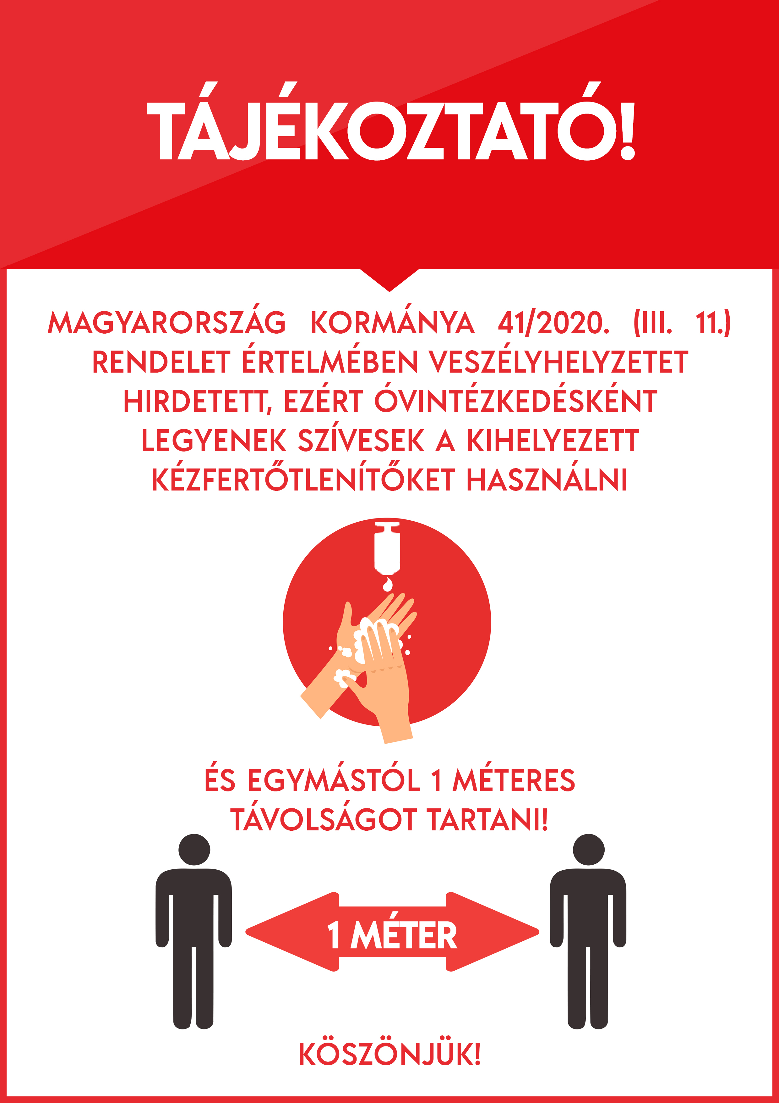 A koronavírus kapcsán kialakult helyzetre tekintettel felhívjuk figyelmüket a következőkre: